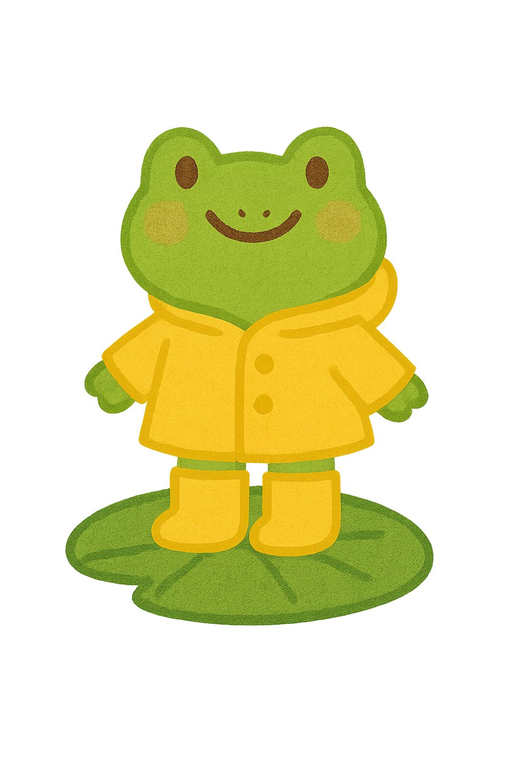 빗방울이 톡톡 떨어지는 우산 위, 노란 장화를 신은 개구리 친구가 미소 짓고 있어요.